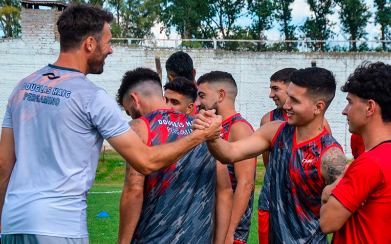 El director técnico linqueño Maximiliano Antonelli, junto a su equipo de trabajo de cuerpo técnico conformado por Diego Castaño como ayudante de campo...